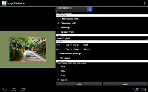 This application sets the picture as wallpaper with/without resizing.