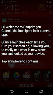 Snapdragon™ Glance is an intelligent lock screen application, which makes it easy for you to quickly access the information you need.